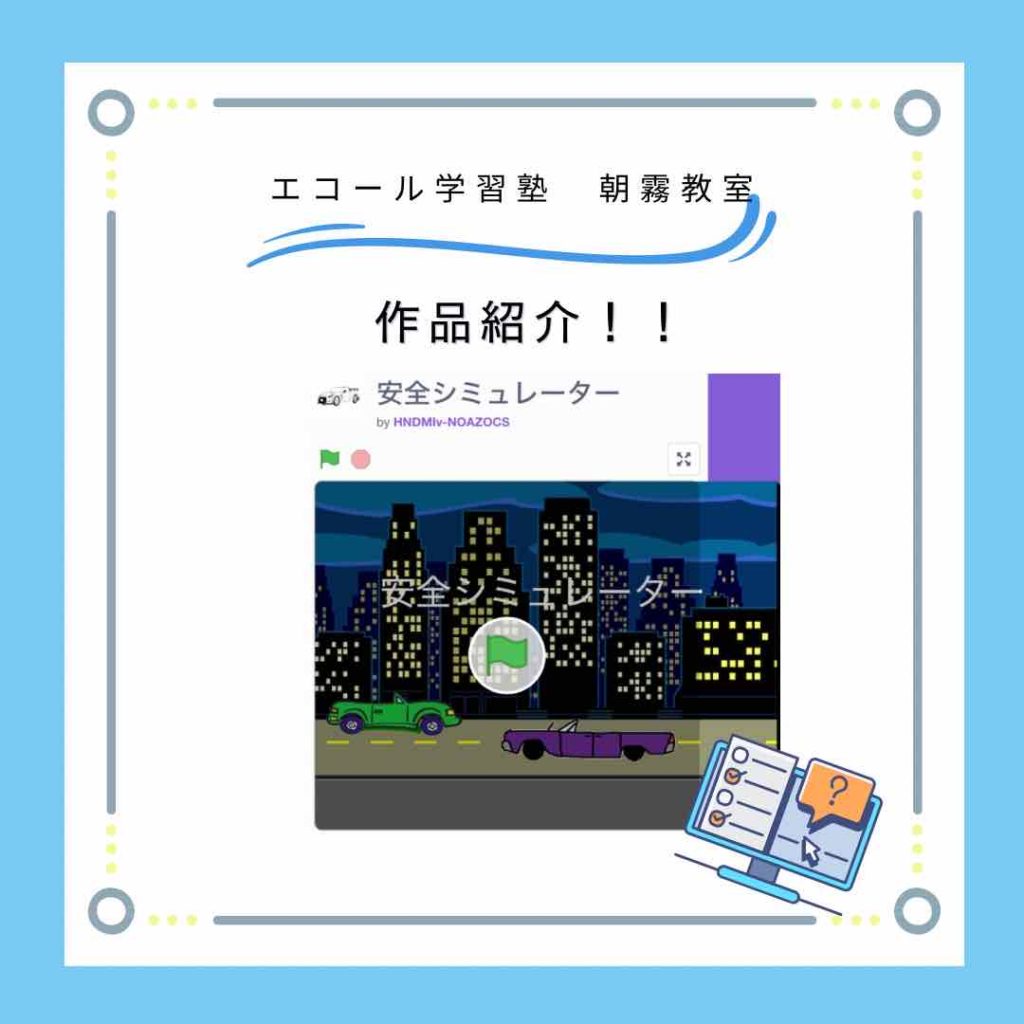 エコール学習塾ではNOAZOCSのテキストを使用し、スクラッチを利用してプログラミングを学んでいきます。さらに、年2回の作品発表会では動画撮影やシナリオ作成など、自身の作品の良さを伝えられるよう準備もしてもらいます。プログラミングを学びながら、問題解決能力を養い、子どもたちの可能性を広げていくプログラミング授業をぜひ体験してみてください。