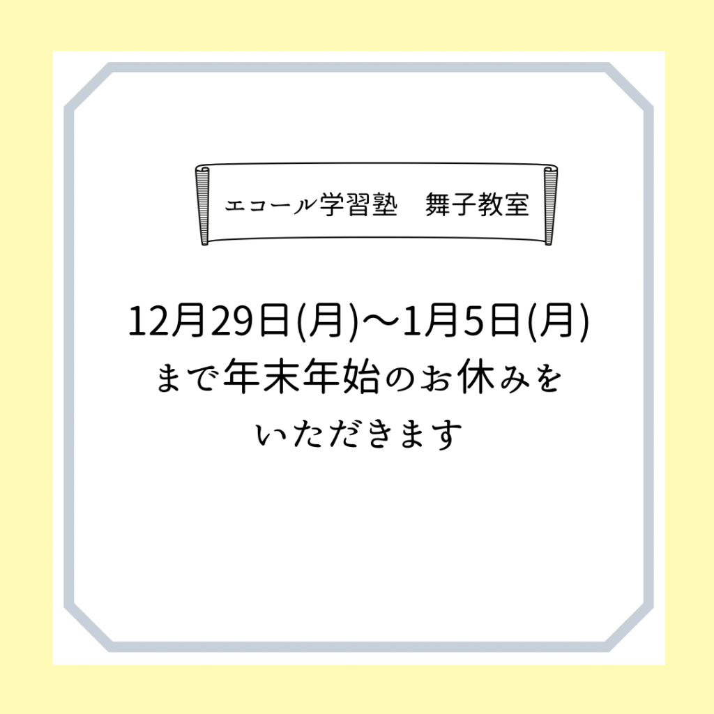 エコール学習塾では、12月29日(月)からお正月休みをいただきます。